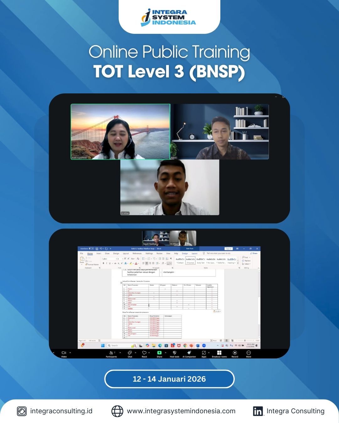 - Pelatihan TOT Level 3 BNSP, Januari 2026