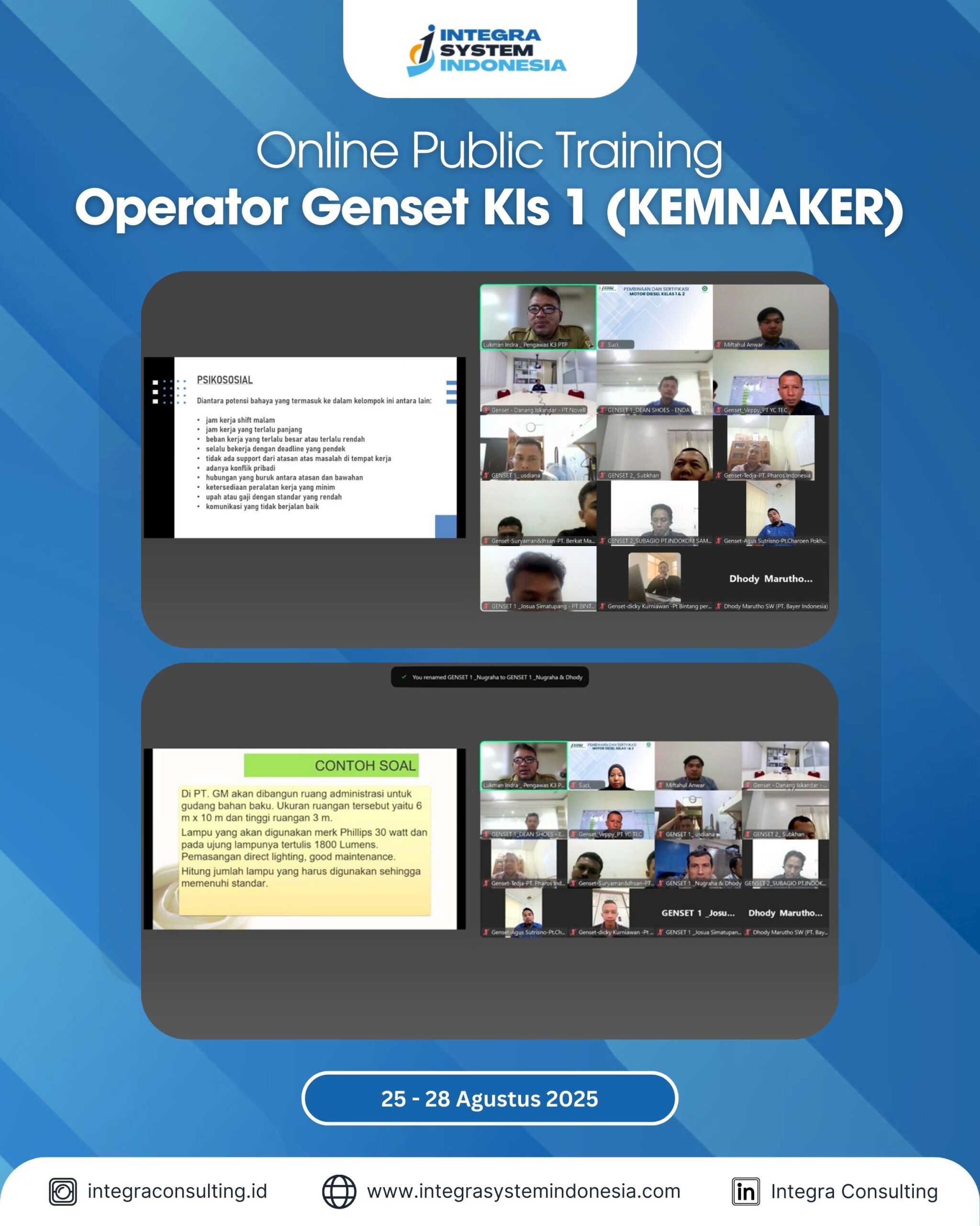 - Pelatihan Operator Genset Kelas 1 KEMNAKER, Agustus 2025