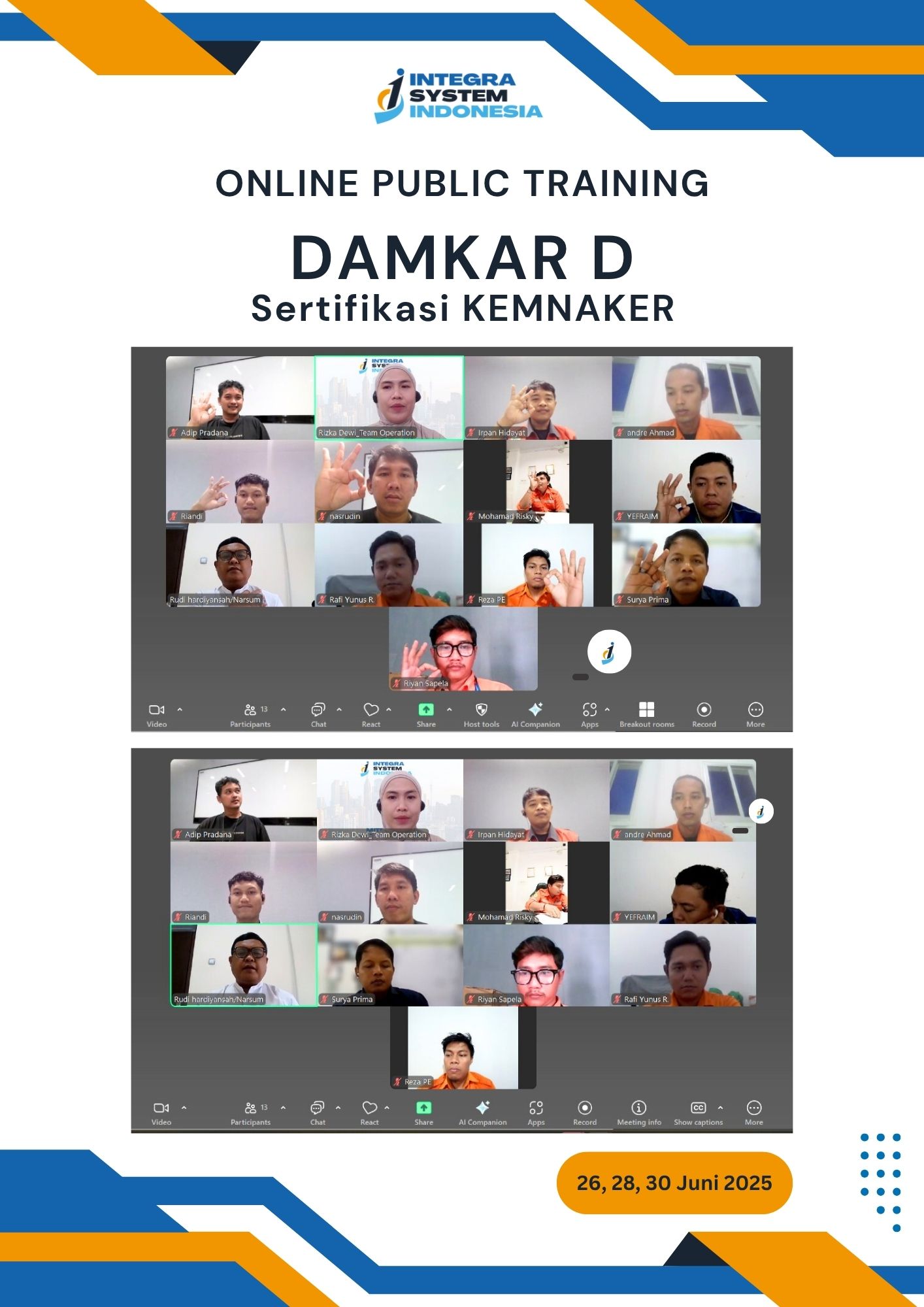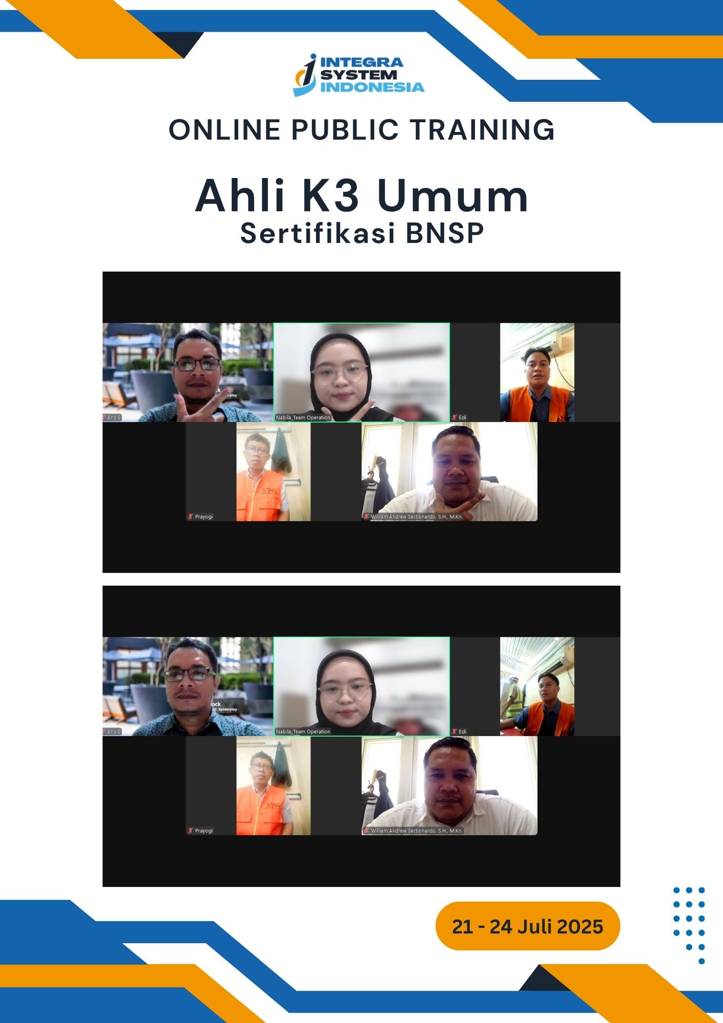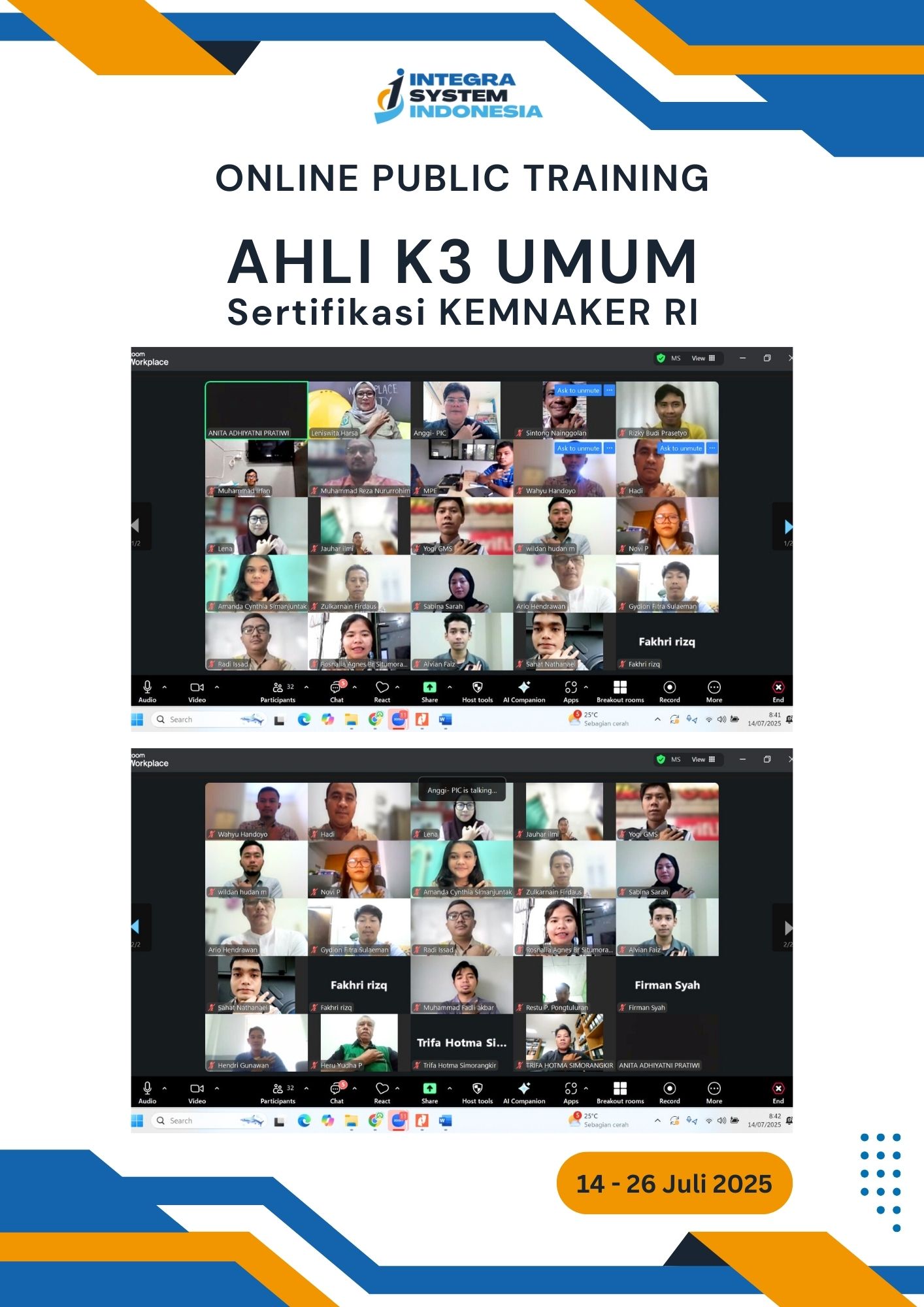 - Pelatihan Ahli K3 Umum KEMNAKER, Juli 2025
