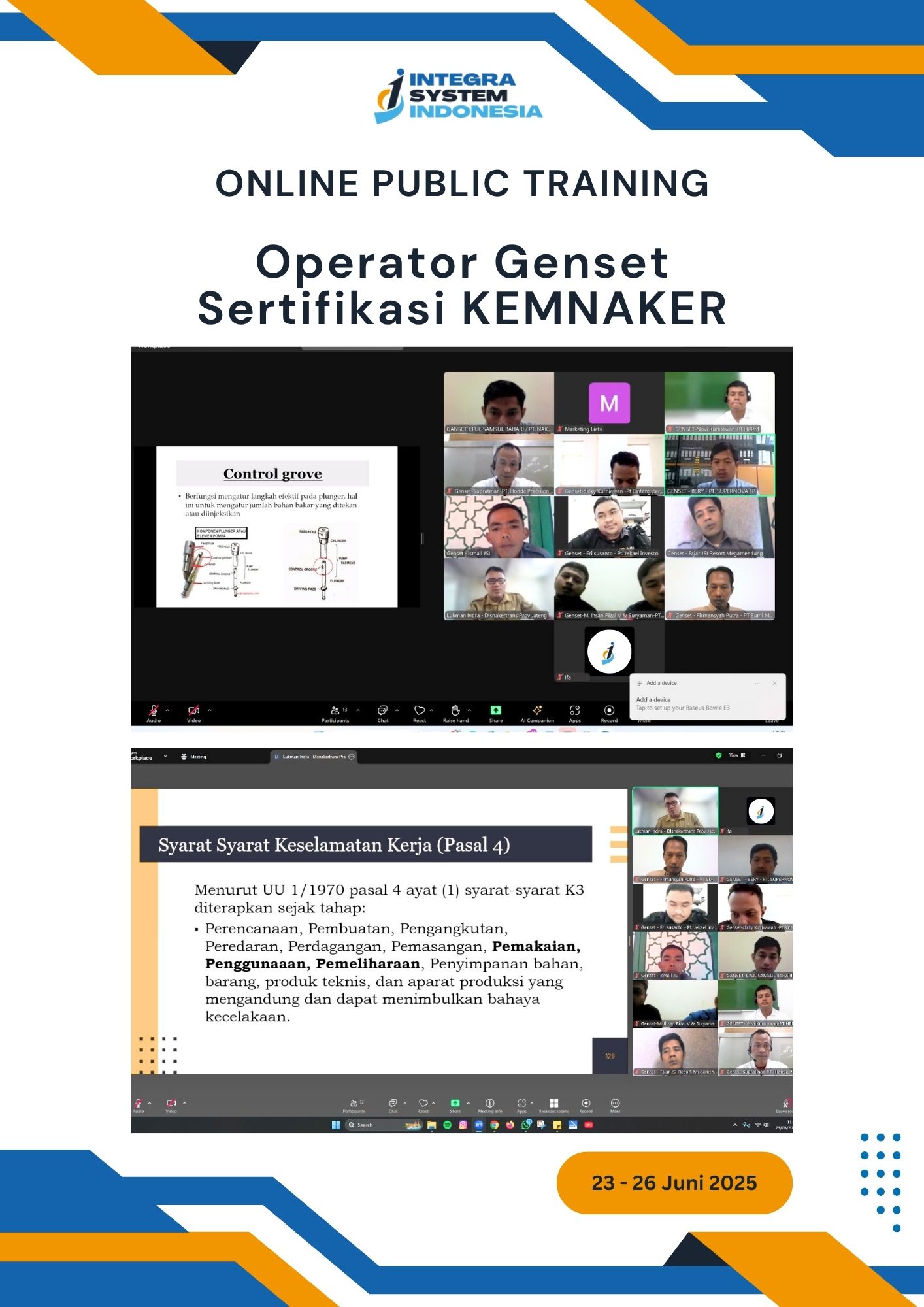 - Pelatihan Operator Genset KEMNAKER, Juni 2025