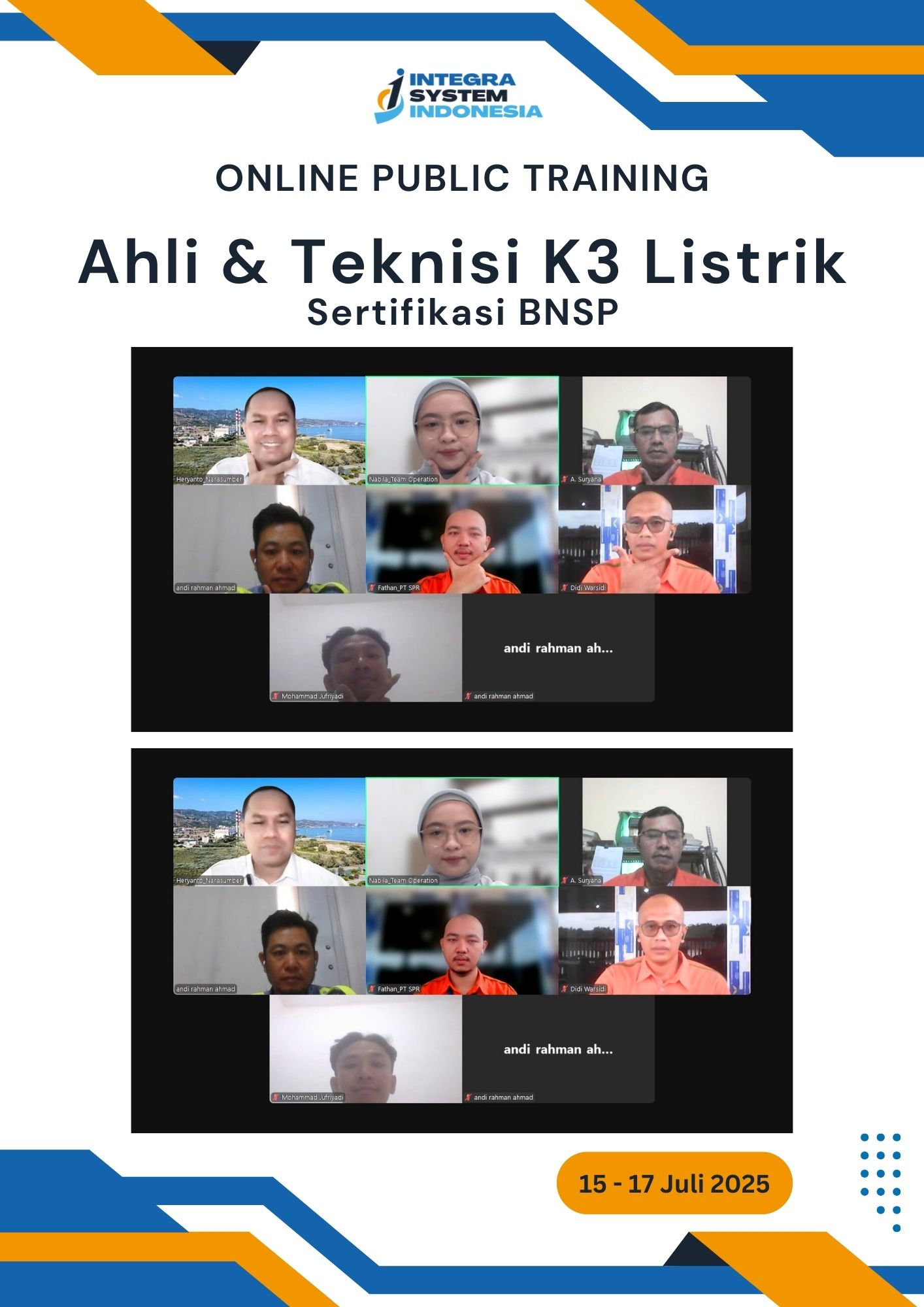 - Pelatihan Ahli & Teknisi K3 Listrik BNSP, Juli 2025